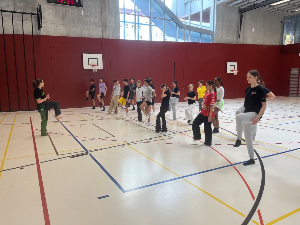 Diese Woche erhielten die Schülerinnen und Schüler der 4. Stufe der OSV einen spannenden Einblick in die Welt des Kickboxens. Unter der Anleitung von Milena von Chikudo Martial Arts lernten die Lernenden verschiedene Kicks, Schläge und einfache Kombinationen kennen.